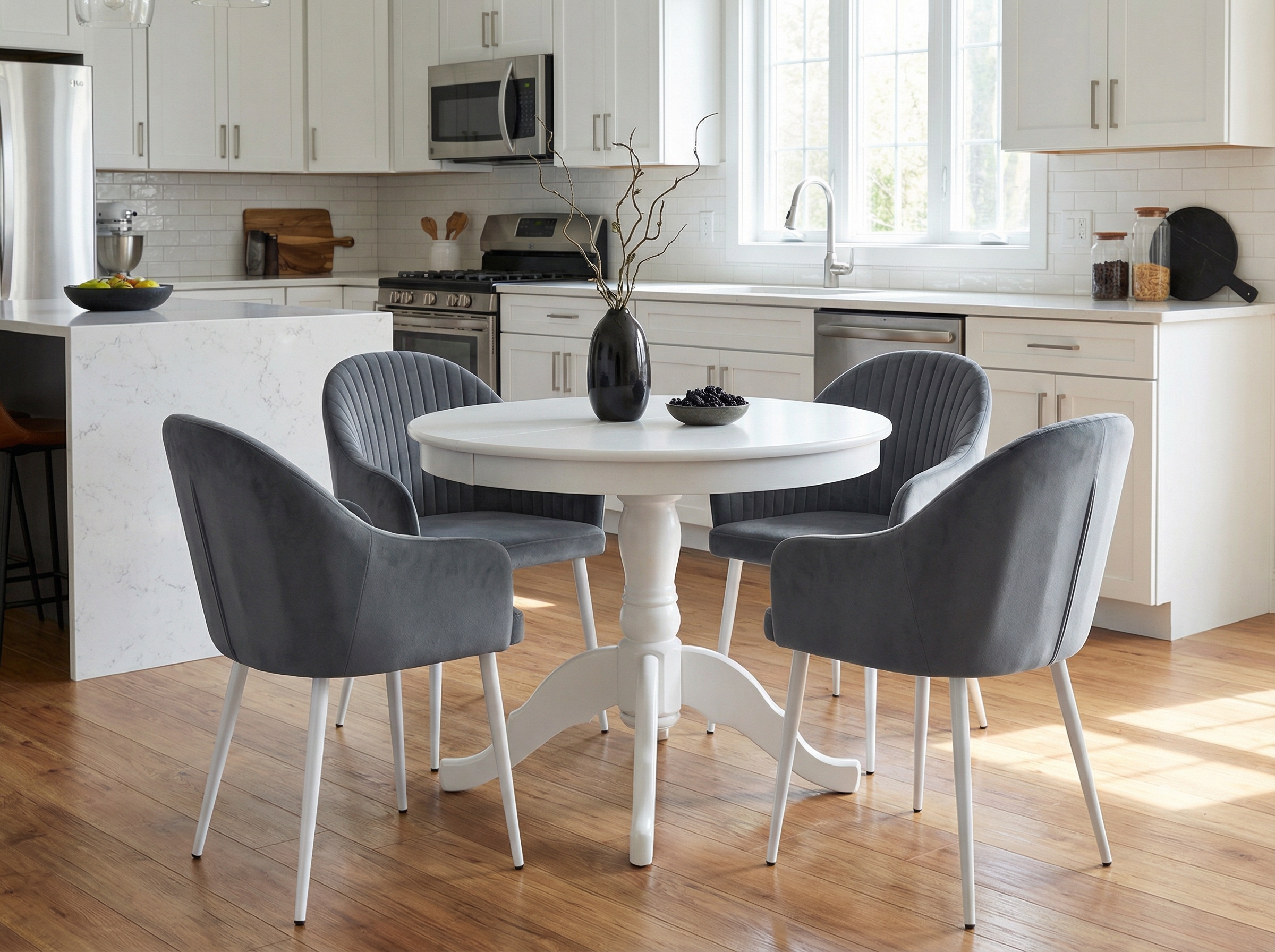 Центральный элемент набора — круглый раздвижной стол Амфора. Его форма символизирует гармонию и располагает к теплому общению, а надежный механизм трансформации позволяет легко увеличить пространство для приема большой компании. Дополняют композицию четыре полукресла Шелл, чьи эргономичные спинки и мягкая обивка обеспечивают комфорт уровня премиум во время долгих семейных ужинов.