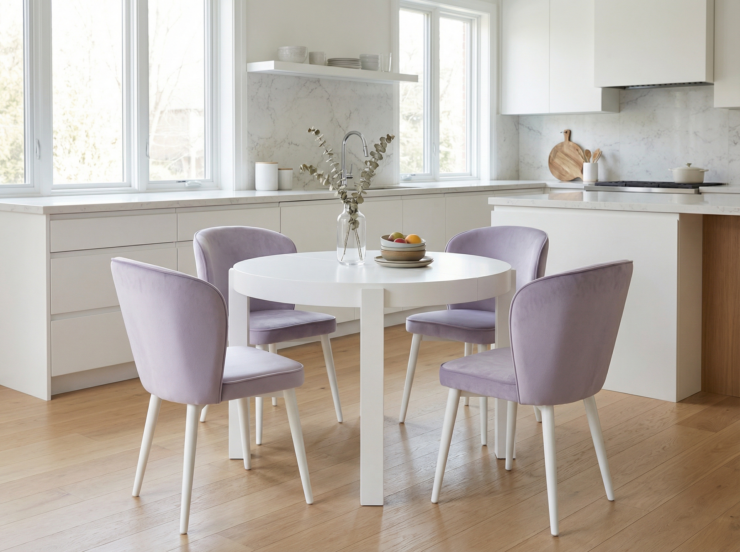 - Полукресло Амелиа (4 шт.): Элегантные кресла с мягкой обивкой и эргономичной спинкой обеспечивают исключительную поддержку. Лаконичный дизайн ножек идеально подчеркивает эстетику северного стиля.