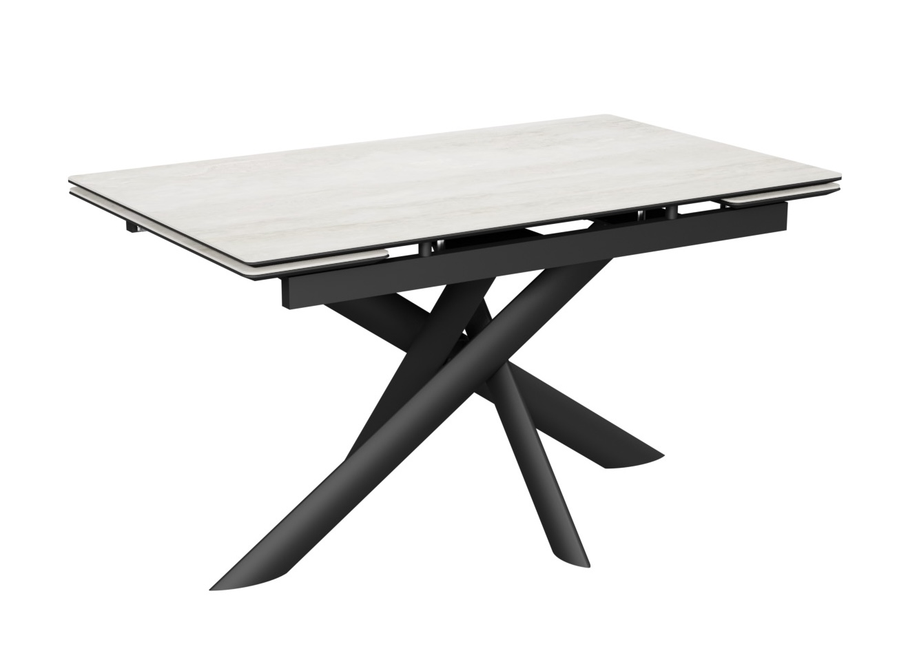 Главная особенность модели — продуманная система трансформации. В базовом состоянии длина стола составляет 1600 мм, а благодаря двум боковым вставкам по 300 мм, поверхность увеличивается до 2200 мм. Это идеальное решение для семейных ужинов и приема гостей.