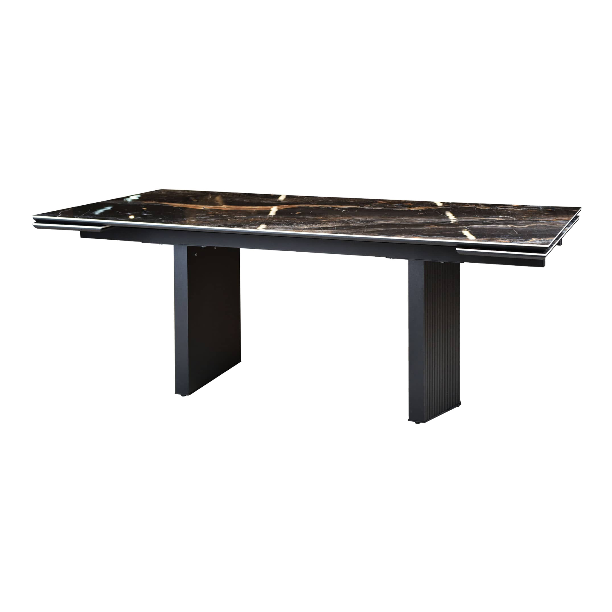 Стол «Моцарт» — это воплощение современной роскоши и технологичности. Главным украшением модели служит столешница из премиальной глянцевой керамики Neodom Titanium Mckinley. Её глубокая текстура с выразительными прожилками имитирует редкие породы натурального камня, создавая величественный визуальный акцент в вашем интерьере.